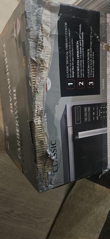We got the Farberware 0.9 cu ft microwave through a Macy's online order (our local Macy's surprisingly had NO microwaves on display!), and when we finally got the package with a UPS delivery (after two delayed deliveries by UPS despite our address being correct...), the box looked all sorts of worn. When we opened up the box, the top right of the microwave had a dent on it, and more worryingly the bottom of the control panel was coming off! Shoddy quality, can not recommend. The child lock on the door handle also seemed unnecessary. Will be returning the item ASAP :(