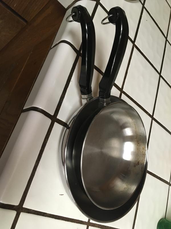 Bought two small stainless fry pans. After years of nonstick that get ruined in a short time, I d3cided stainless was the way to go. Years ago I had farberware and loved them, so. . . . .