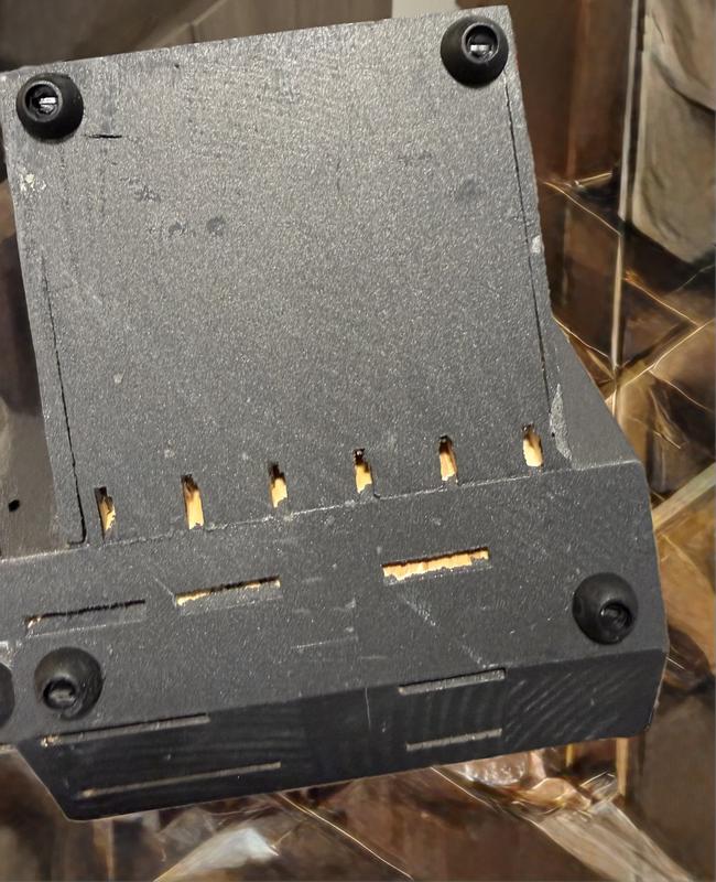 Broke into two pieces right out of the box. Missing knives as well. Definitely used and reboxed without checking