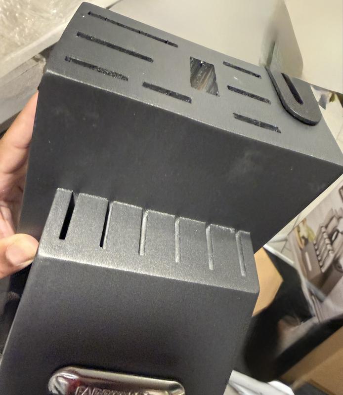 I haven’t had these knives for that long I washed the knives and I was getting ready to put them away, and I saw these little pieces that look like hair on them on almost every single one of the knives there’s little pieces of metal coming off from the knives