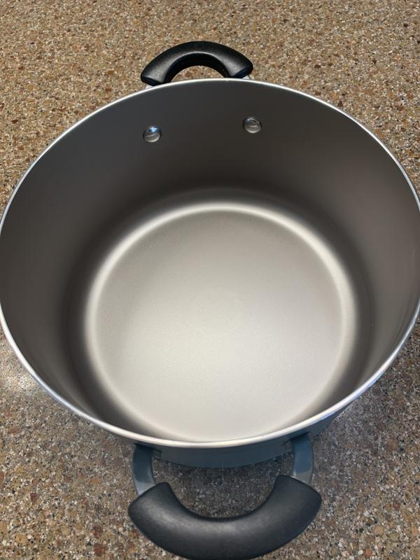 I must say that I love this new Faberware stockpot. It's the perfect size for making soup, boiling potatoes, and of course a great pasta pot. I use this several times a week. I love the vented lid that let's steam out so I don't have to worry about my recipes simmering over. The nonstick works great and food comes off with ease making cleanup a breeze. I rinse it and then throw it in dishwasher. I also love the retro/modern color!