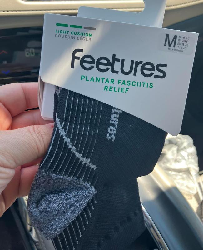 Although these should not be regarded as curative, they relieve the target areas on the foot. It has been my experience, however, that one should round up if one’s Feetures sizing is borderline. Once that adjustment was made, the socks have been a welcome replacement for the brand I used before.