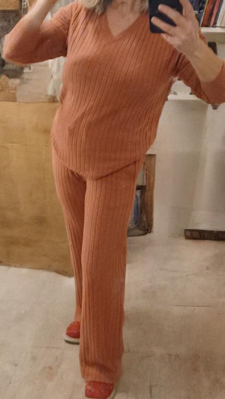 This loungewear set is beautiful. It is very soft and comfortable. The pants are a little long for a size small but it’s worth paying to have them altered. Would definitely recommend buying.
