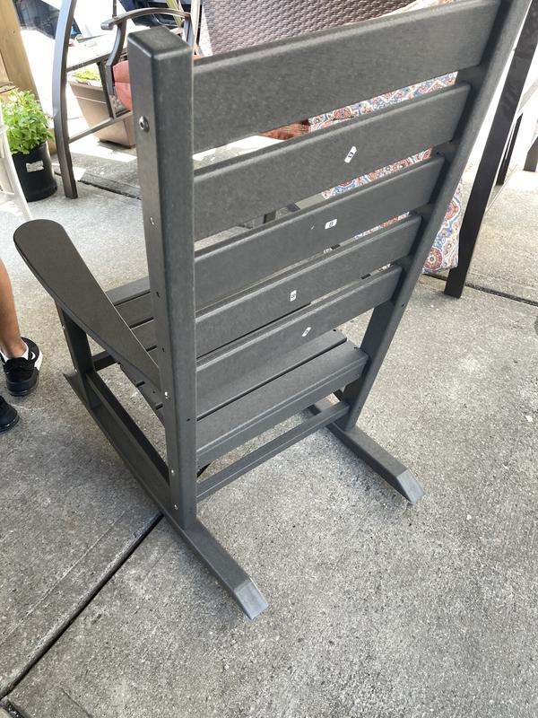This rocking chair is great! It was easy to assemble, but it was also very sturdy. The material is smooth and easy to clean with zero chance of splinters. The white is crisp and matches all outdoor decorations. I would get more patio furniture from this company. Highly recommend.