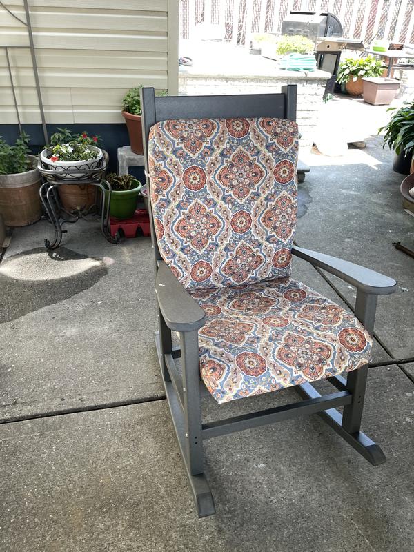 I love this rocker. It adds the perfect touch to my back porch and is so cute. It is comfortable and I love it. I now have to buy another so I can have a matching set. They are easy to clean and super cute. It was a little hard to put together alone but I got it together.