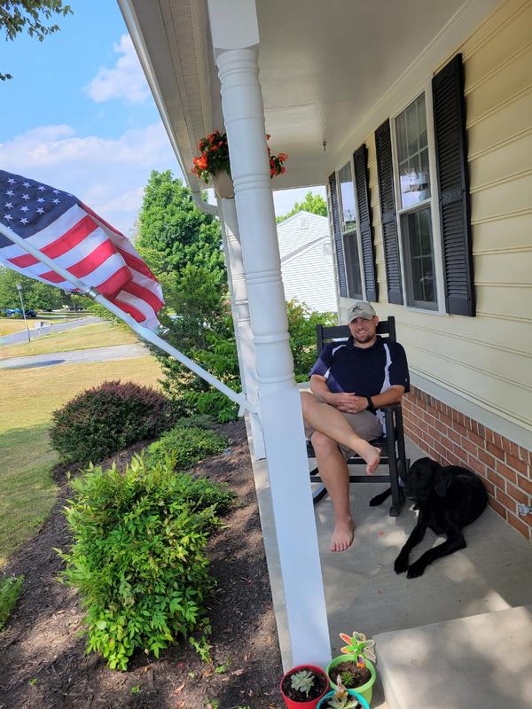 This rocking chair was just what I was looking for. I wanted a light comfortable chair for my front porch. This black rocking chair matching perfectly with my other furniture and rocks my worries away