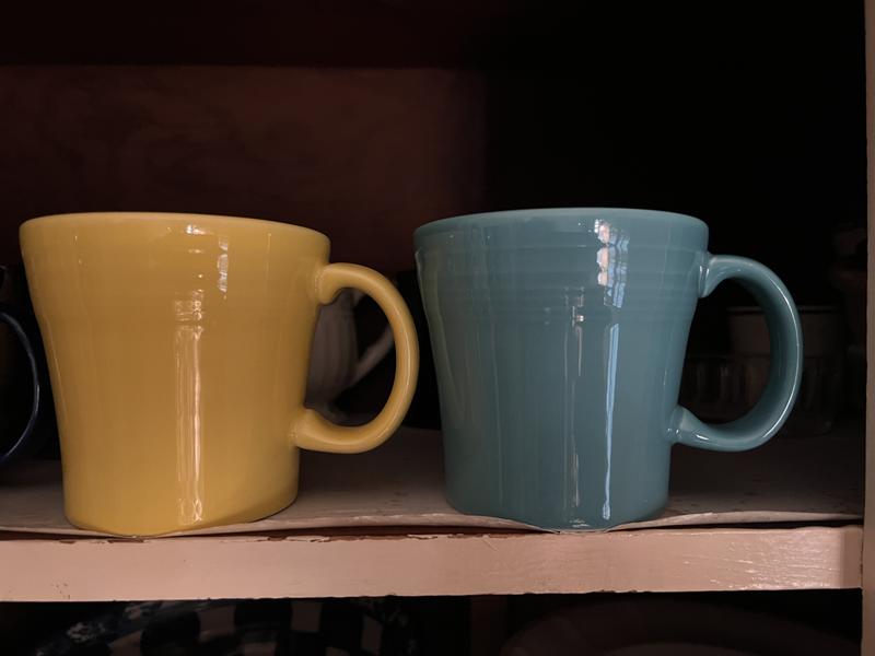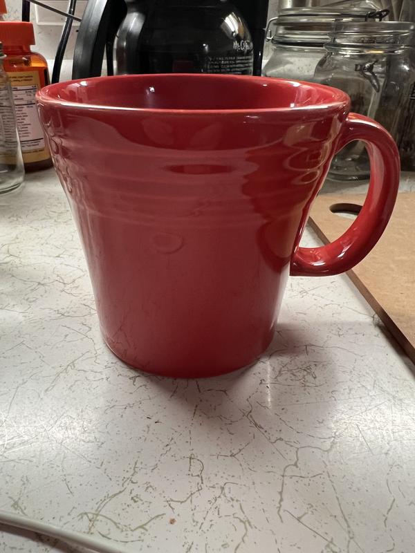 I love the Fiesta 15 OZ mug! The handle fits my fingers perfectly and the mug itself keeps my tea at the temperature I enjoy. I also like the tapered shape of the mug as it is a good fit for my other hand. I intend to order more!