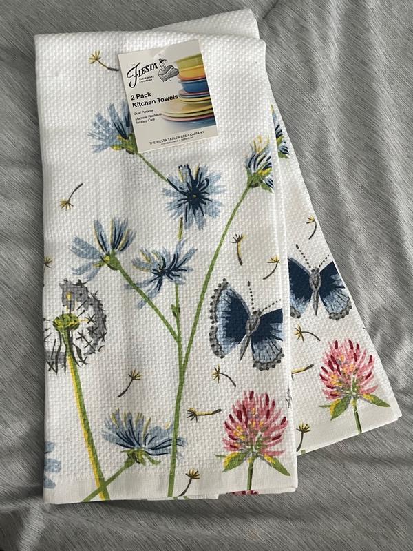 I always associated the Fiesta brand with the colorful tableware and casserole dishes. I never knew they made kitchen towels and table linens as well. The tea towels are equally as vibrant and eye-catching as their other products. The 16" x 28" towels come in a set of two and are cotton with a waffle knit texture. They are also soft, absorbent, fast drying, and machine washable. That being said, they did shrink slightly after washing in cold water and drying on low heat. However, I suppose that’s to be expected with 100% cotton. Despite that, they still look great, and the pretty blue floral pattern is definitely giving spring and summer vibes. They are a lovely addition to my kitchen!