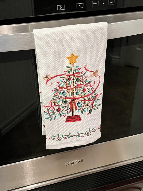 The towels feel like they will be absorbent and appear to be a good quality. I was a little disappointed that only one of the towels has the Christmas tree on it and the other one has just a holly border and doesn’t look as decorative. Perhaps I didn’t look at the details very carefully.