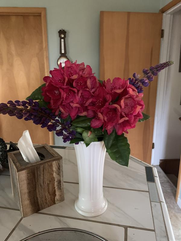 I purchased this beautiful vase in Scarlet red. My husband's favorite color! So now it will always remind him to bring me flowers on his favorite color! I love all of my Fiesta ware and have been collecting pieces for many years. Made in the USA 🇺🇸 doesn't get better than that!!!