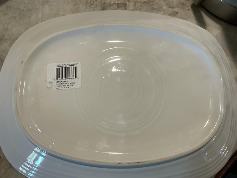 This is a very pretty platter. Great size. But it does not have the imprint “Fiesta HLC USA” on the bottom of it like the rest of the products do. I can’t tell if this is actually a Fiesta made product. So that’s why I gave a review a 4 out of 5.