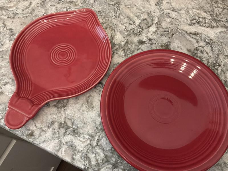 Web ID: 18048194I was a bit disappointed. I have many Fiesta items. But this plate was not as red, as other Scarlett red pieces I have. Possibly due to the shape or decorative design on it.