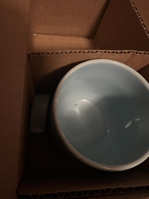 I chose this wonderful set of mugs because it included the retired color "Mulberry." When I receive them, they were extremely well packaged, gorgeous tones of cool colors, turquoise, white, lapis, and Mulberry, and were amazingly heavy in hand for a wonderful hot drink. I love the fact that they are larger than most coffee mugs in volume, but still an average height with the ability to be stacked in your cabinet. Fiesta gives these mugs the ability to be washed in the dishwasher, microwaved, or even warmed in the oven if you are making Tom and Jerry's! I use mine for hot tea and coffee. The fiesta materials allow these mugs to retain the warm temperature of your drink for much longer than the average ceramic mug. I love the fact that this company offers these cups in a set of four in warm shades, bright shades, and these beautiful cool shades. I would recommend to fiesta to include the "sky blue" instead of the white in this set if they need recommendations.