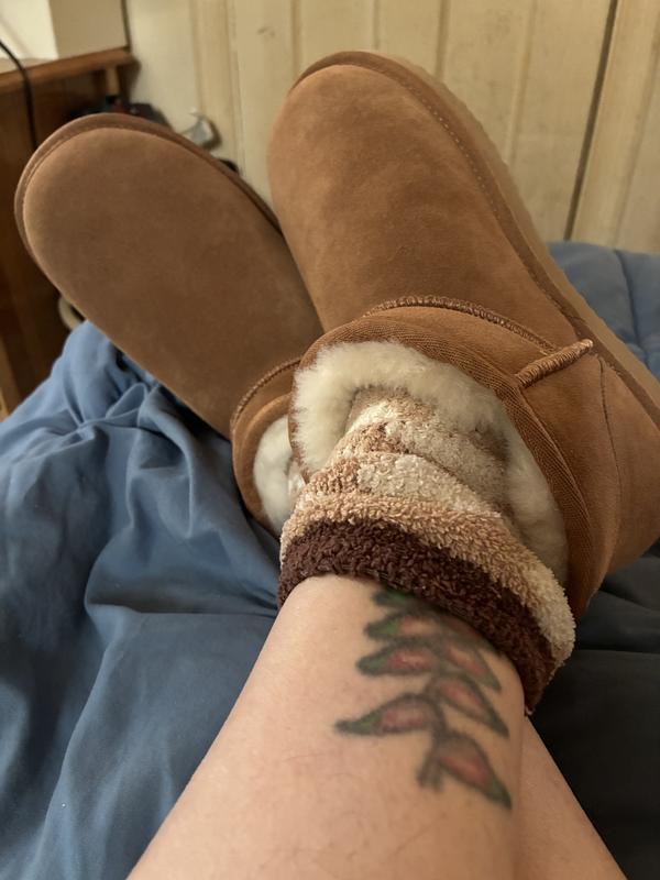 I just received my Fireside Micro Booties, and I love them! They are a great alternative to the similarly styled Uggs booties, and less expensive! I am normally a size 10, but was concerned about them fitting smaller because of the lining so I ordered an 11, and they fit great - even with thicker socks. Very happy with this purchase and I hope they hold up after wearing.
