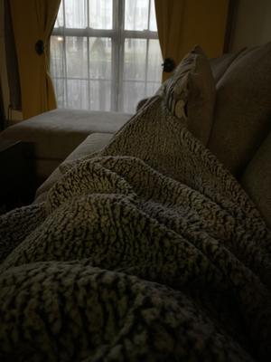 I didn’t like the quality of the throw. It looked lush in the picture but is thin. Navy blue catches every lint there is