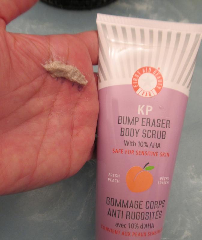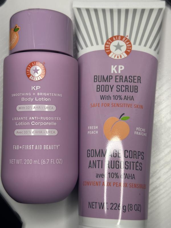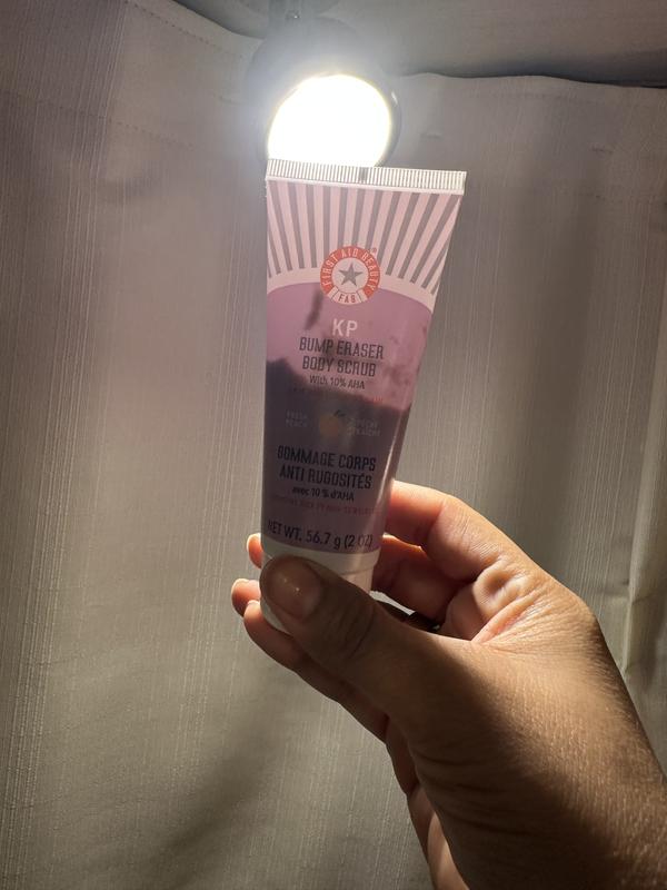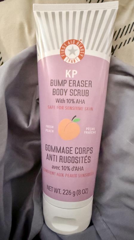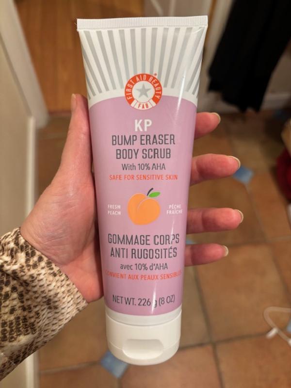 I have slight KP on my arms so I was super excited to try this product! I have been using it twice a week for a few weeks and have yet to notice a major difference. The peach scent is nice but it’s an artificial peach scent. I think I prefer the unscented.