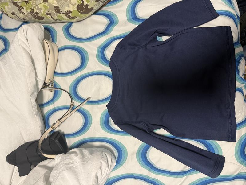 I Order this item the wrong size in navy color but it’s a really good quality. It is a true size item just I got the wrong size. Material really soft and super stretchy. I love the mini bear pocket with little ears, makes it look elegant and unique.