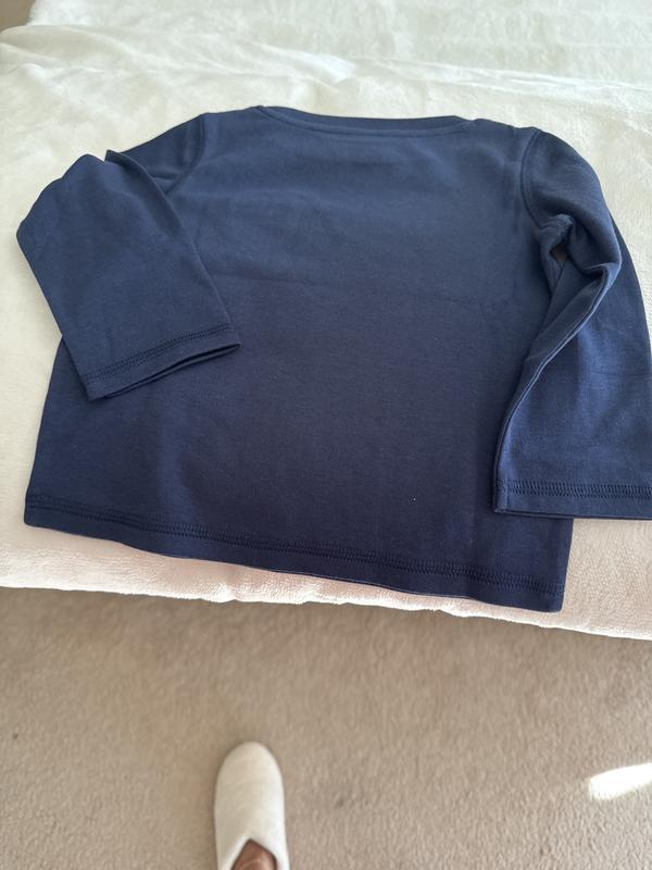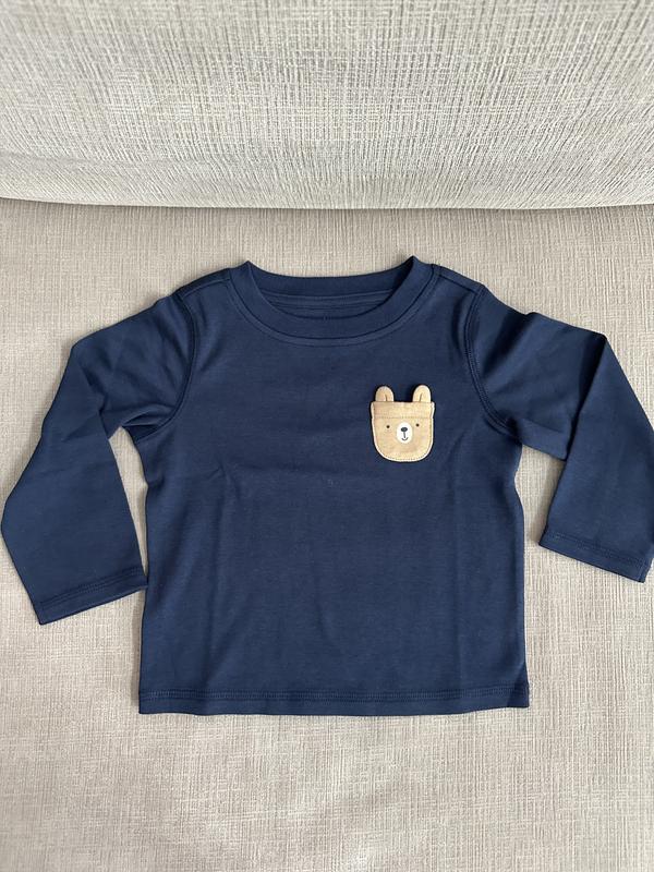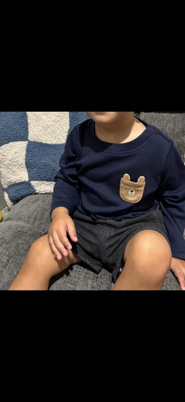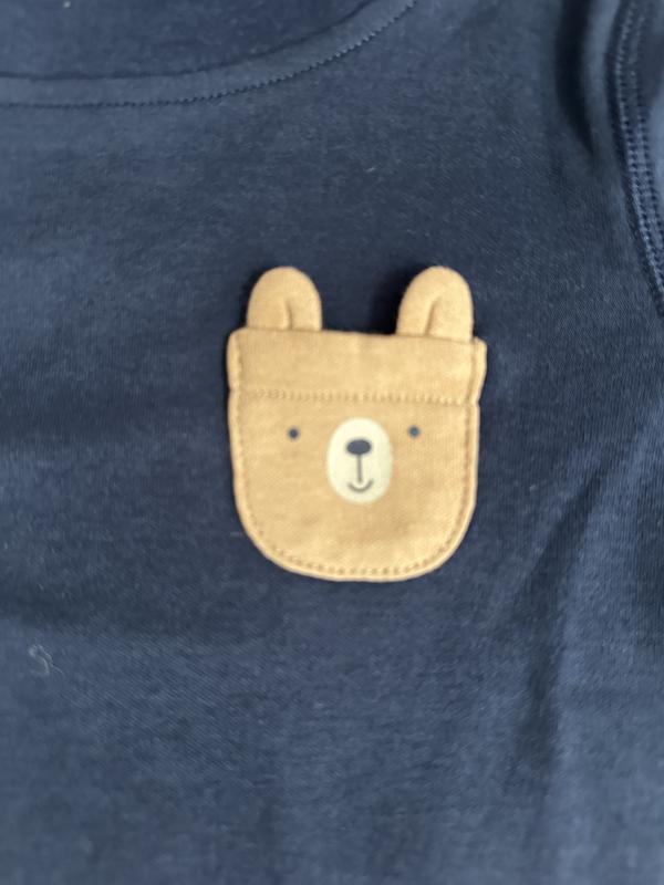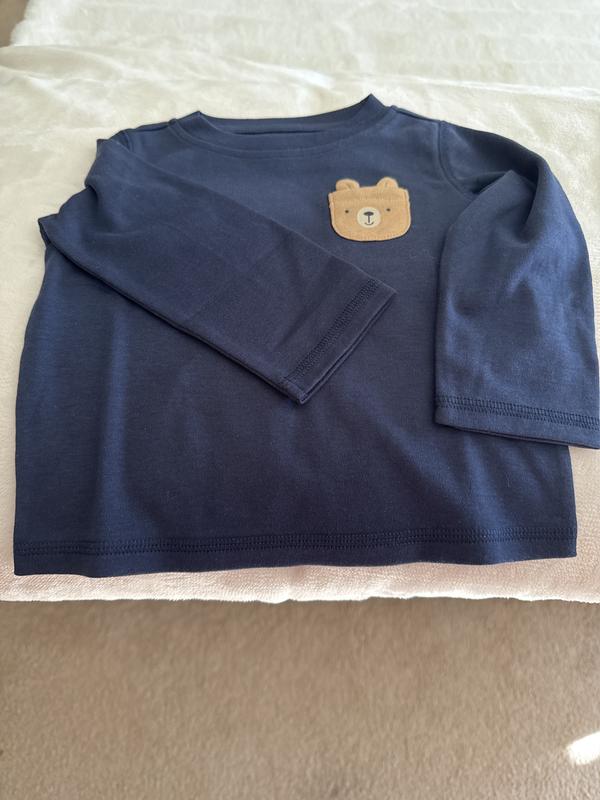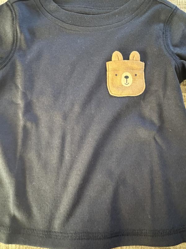 Cute bear pocket top made in a nice cotton fabric. The navy color with pocket bear makes look the babies so cute. I love the style, the fabric and the fit of this top. The bear on the pocket is made of a diferent texture.