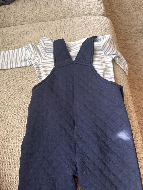 It’s cute & adorable. It’s playful enough for church, shopping w/mommy & daycare. The snaps on the bodysuit & overalls are convenient & easy for a diaper change. Quilted jumper is soft & cuddly! I give it a 10