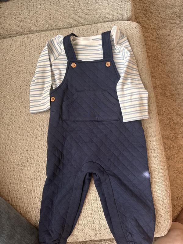 Cutest little set!!! Love that I can use the overalls with other outfits as well as with this set. Have not gotten to try on yet but know this is going to look so cute on my little one. Love love love this little outfit.