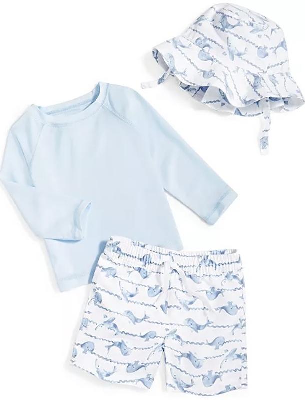 Baby Boys Whales Rashguard, Swim Shorts and Hat, 3 Piece Set, Created for Macy's