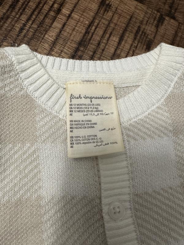 This is a cute stylish cardigan for an infant. Color can be wear for both boys or girls. It is well make with very soft material, lightweight, suitable for fall weather. Only 1 point that need to consider is it seems a bit smaller than its real size.