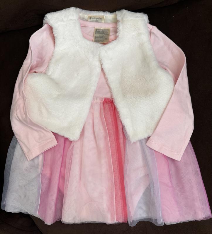 This dress is simply adorable, well made and comes with a short coordinating furry vest. It will be perfect for spring and the cooler days of summer. I was not able to get the current size for my little one, but I can’t wait to dress her in it and field all the compliments.