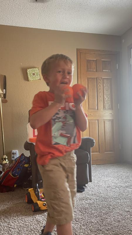 My highly energetic five year old has such a wonderful time with this toy. The fun sound effects and movement add a fun twist to a classic toy, presenting a big enough challenge for older kids. This is a wonderful way to build coordination and burn off energy.