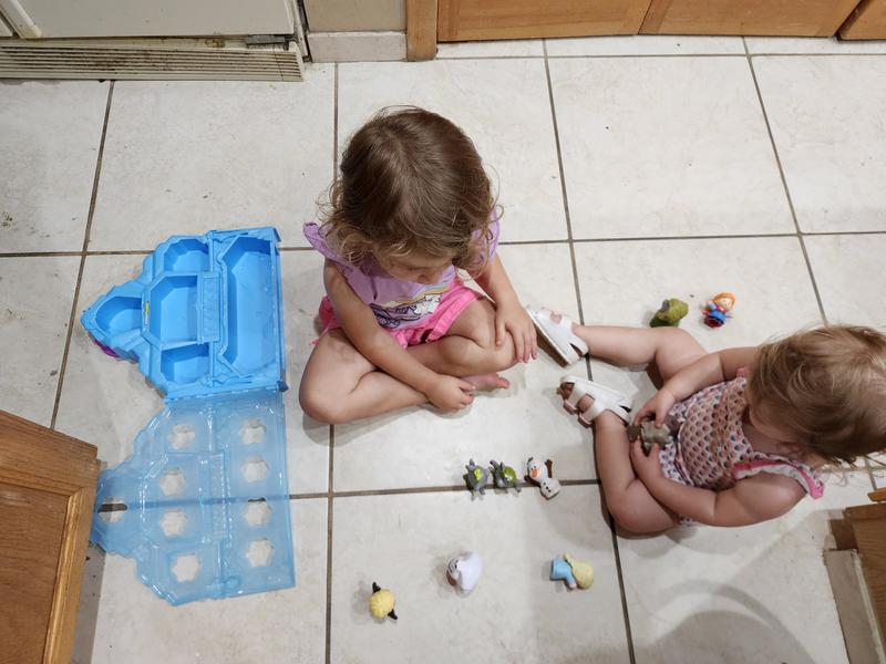 From the moment the kids first saw the Disney Frozen Carry Along Castle Case by Little People they were very interested and thrilled. They loved the fact that the castle contained all of their favorite characters as well as a few of the "monsters". They really liked having a slot in the castle for each character. They have fun playing with the Little People figures and then placing them back in their intended slot in the castle. The other kids in the neighborhood love to come over and specifically want to play with this case and characters. The figures are rounded and safe for small children and fun and identifiable for the age range intended. The castle case if well constructed and has a nice slot for all of the characters that come with the set. The castle is small enough for the age range to carry and move around easily.