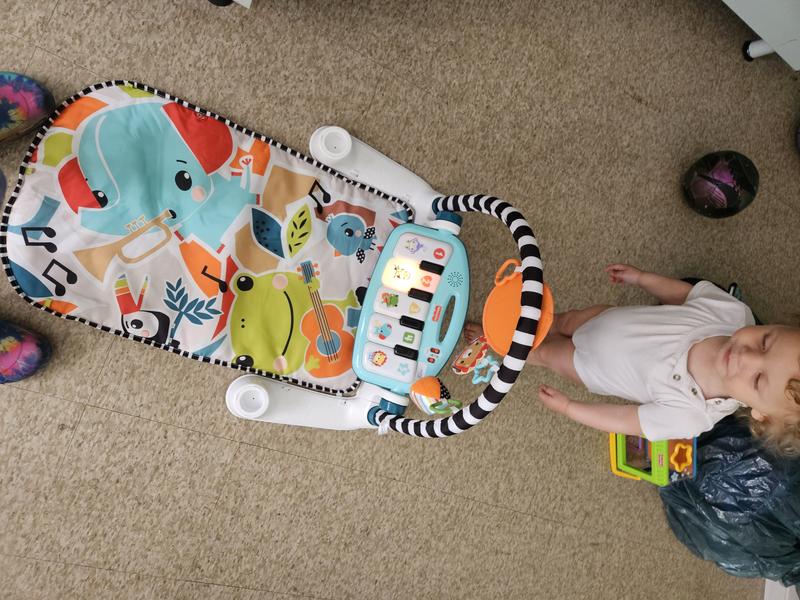 I bought this for my 2 month for Christmas. And he loves it! But the sound on the piano has already stopped working which is very disappointing. We have tried changing the batteries with which did not solve the problem. Would not recommend.