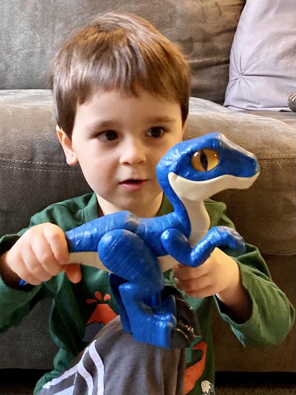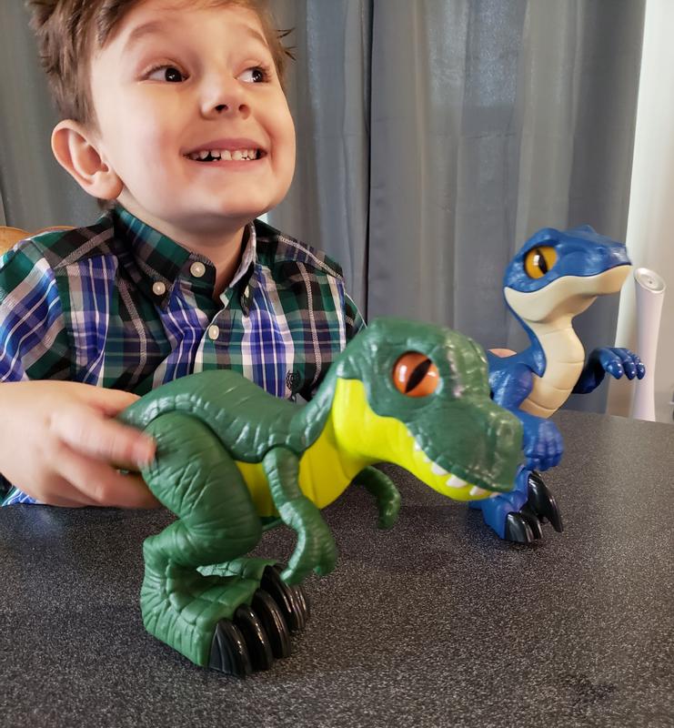 This is the third Imaginext Dinosaur we own. The other two make sounds and have buttons you can press to have the dinosaur move. This one does not, and my son was asking how to make it move, etc. if your’re looking for a plain dinosaur toy, this one fits the bill.