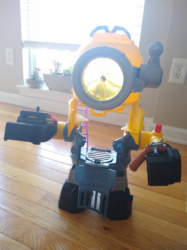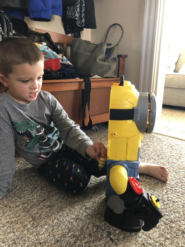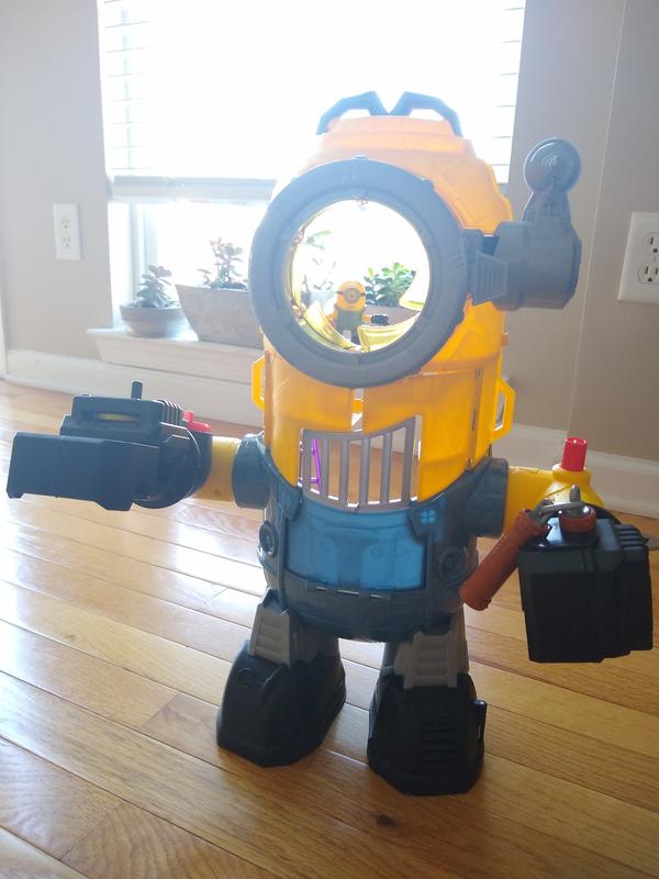 My kids have enjoyed playing with this Minions MinionBot! They love that it shoots bananas and swings battle sticks! My youngest really likes that the eye can open and close, he likes to hide behind the MinionBot and reach out at you as you go past. This is a very durable product and stays on it is two feet very well. Overall, my kids have enjoyed playing with this MinionBot! I think the only way to make this better is to add sound effects when the battle sticks swing!