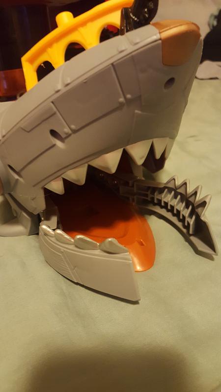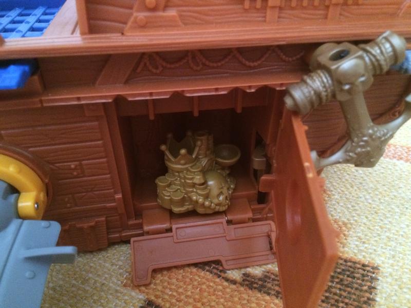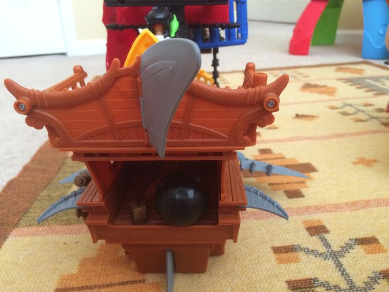 This pirate ship based on a shark was exciting and interesting to my 3 year old. With features that differed from any other ship I have seen in the past it was novel for my typical shark loving littl boy. The front of the ship is a mouth that bites just like a shark's and the ship has interesting little features like a cannon that shoots and spears out of the side.