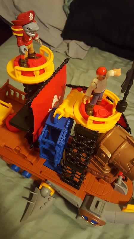 After careful consideration I decided to gift my 3 year old nephew this pirate ship - he was thrilled with it and plays with it on a daily basis! It is a quality well made toy that I can see him playing with for many years to come. It has many different features that easily allows more than 1 child to play with it at a time adding to the fun. When you move the ship around the fins move with the motion, making the shark look like it's swimming. The power pads are all great fun - the shark bite action captures pirate enemies, you can fire cannons from the top of the ship and reveal hidden treasure too. There are so many other features your child will enjoy discovering like the plank and yardarm. The action figures go with my nephew whenever he has to go out:)