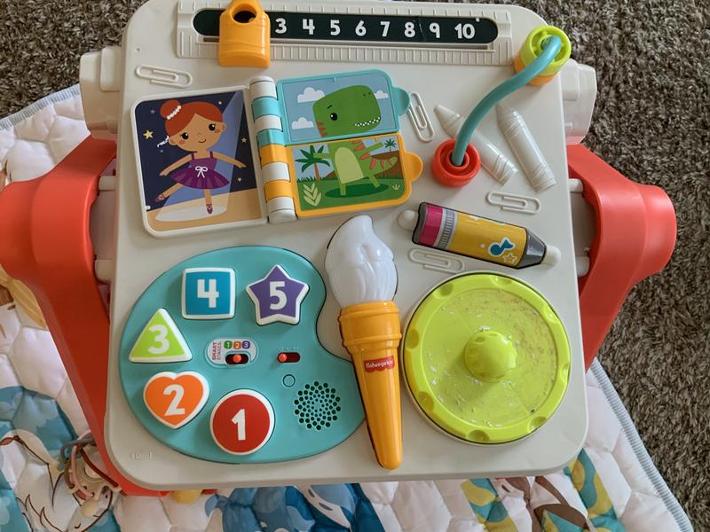 This activity table is amazing I love that it can be used in different ways it grows with your child it has it all a Busy board, play table, drawing table, and standing easel the colors are vibrant they catch the child’s attention it plays music it’s a wonderful learning activity table
