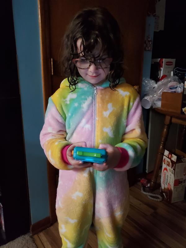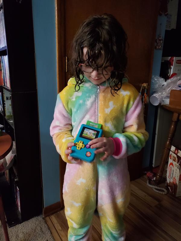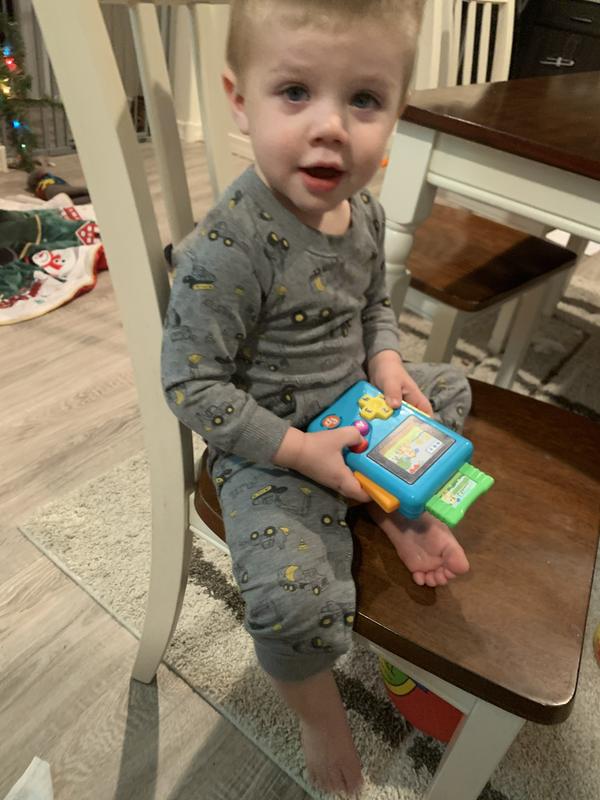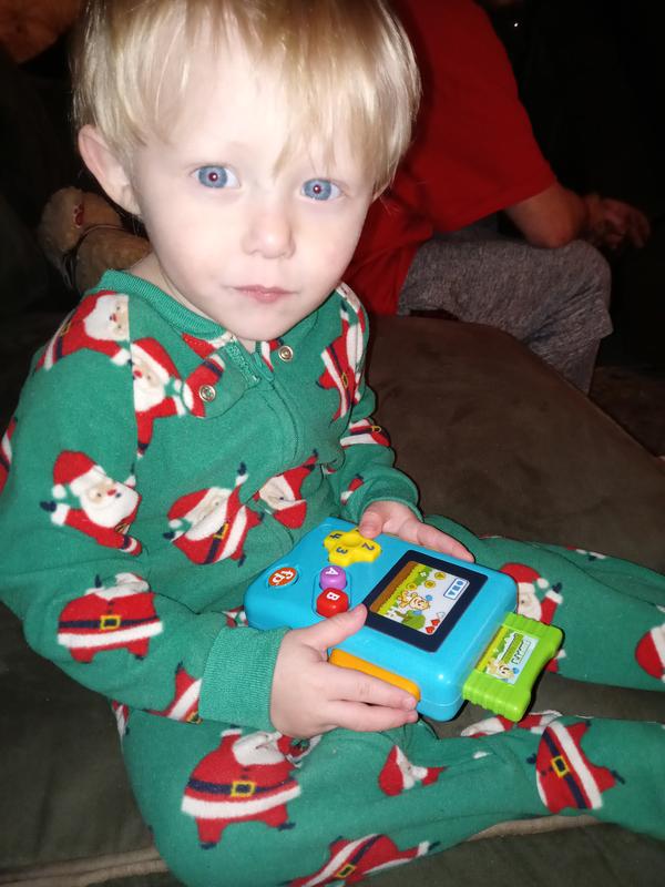 I am so happy to have received the Laugh & Learn Lil Gamer. It's a adorable toy perfect for boys or girls. It has buttons like you would see on a hand held game that makes music and says phrases. It is helping my child to learn colors shapes and directions.It's the perfect size for little hands to be able to hold and use the buttons easily. It even comes with a cartridge to look like a real game but push the cartridge down and it makes lights sounds and music.