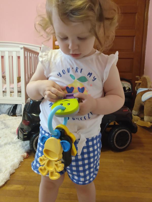My 1-year-old enjoys dragging these keys around and likes to push the buttons that make sounds. Not to mention he really enjoys putting them in his mouth.