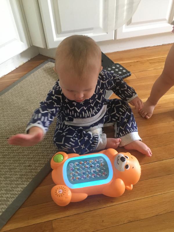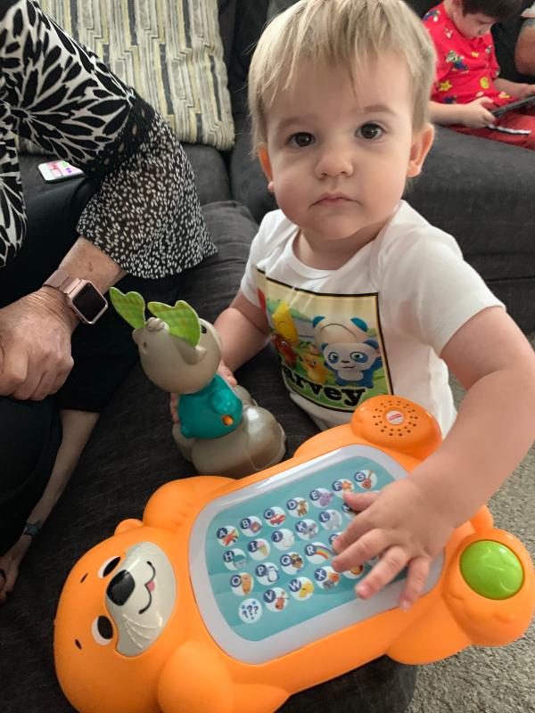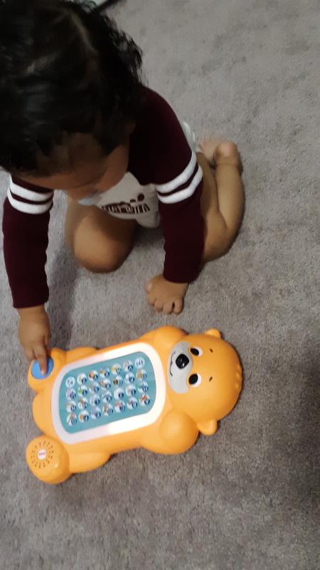 Yes, I get the songs stuck in my head but at least there are many songs to get stuck instead of just one. BabyShark do do do do you're welcome. She has this Otter and the regular FP tablet that both do ABC's. The Otter gets most of her time (although she likes them both). Oh for the spinning ball. She just spins it and spins it and spins it. Because it makes him sing. OMG the spinning ball. We are getting a playdate together soon where everyone brings their Linkimals. YAY!