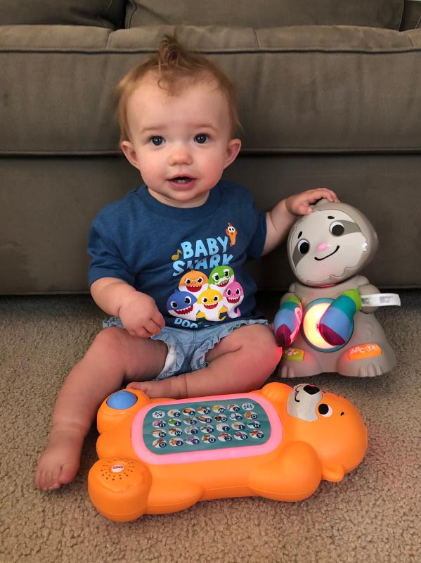 My 1 year old son got this and two other linkimals for Christmas and he loves them. He gets so excited when he touches one toy and the other toys sing, light up and one moves. This one says the letter or the picture and has a “find the” game. Highly recommend these toys.