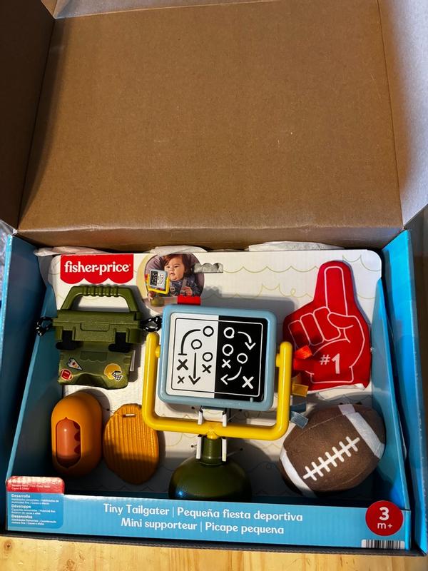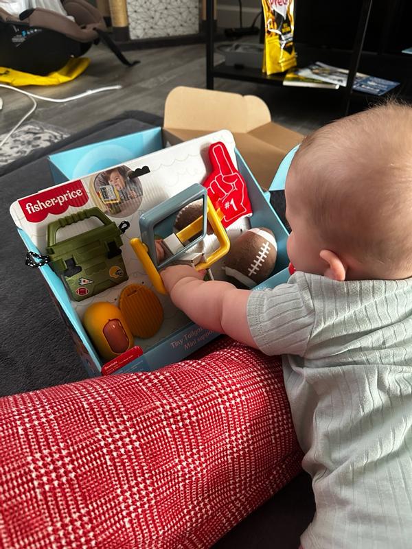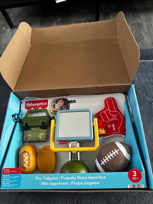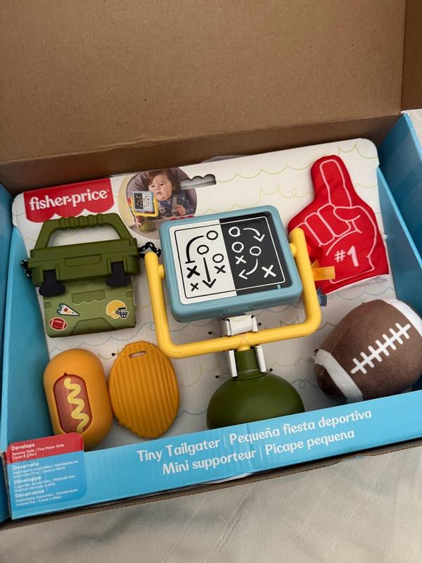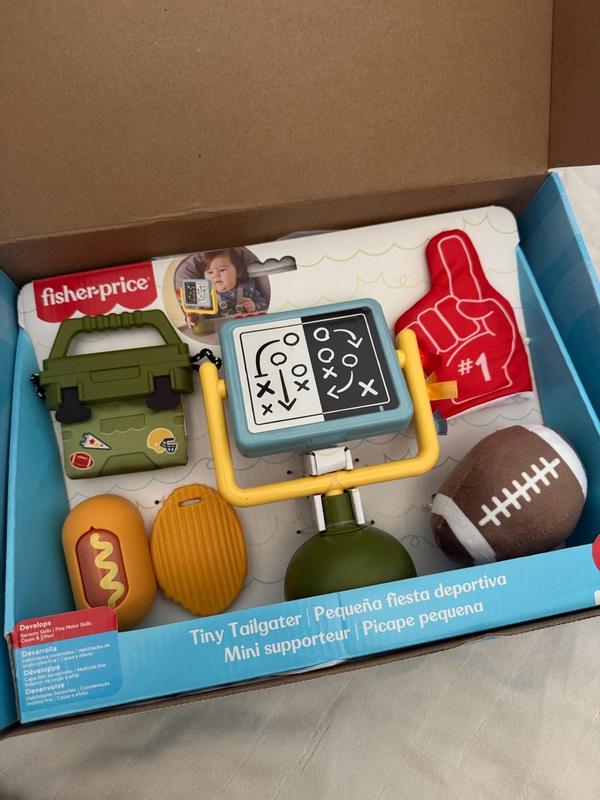 As a user, I found the Fisher‑Price Mini Me Moments Tiny Tailgater Set to be a delightful addition to our baby’s toy collection it’s quirky in the best way with its little football and foam finger teether, and the varied textures (soft plush, crinkle, chew‑friendly materials) really engage my baby’s curiosity during tummy time. I love that it’s all themed in a fun “tailgate” style which adds a playful twist instead of the usual pastel baby toys, and everything feels sturdy and safe for little hands and mouths.