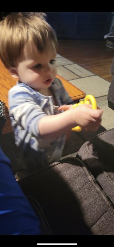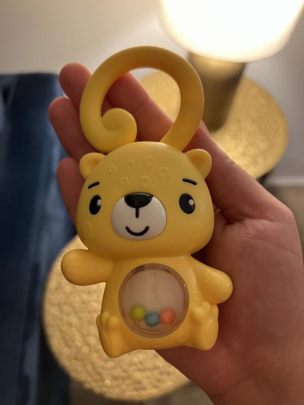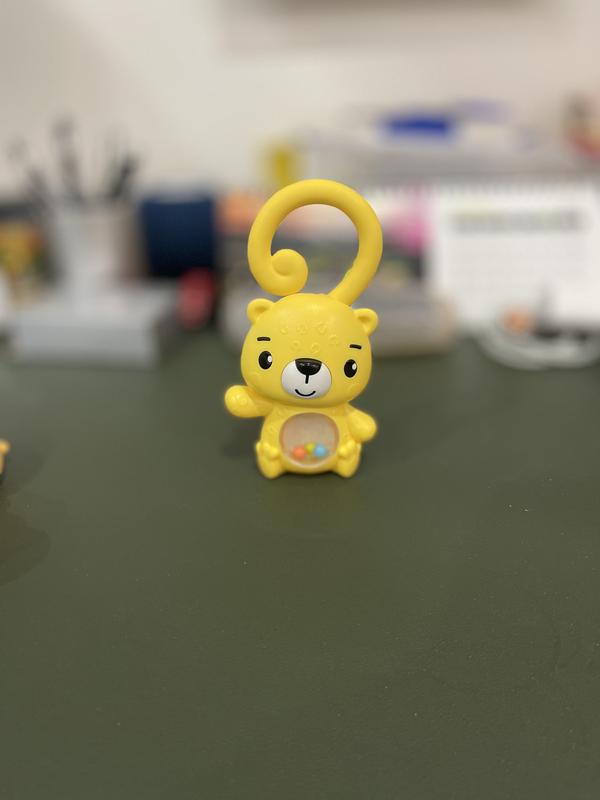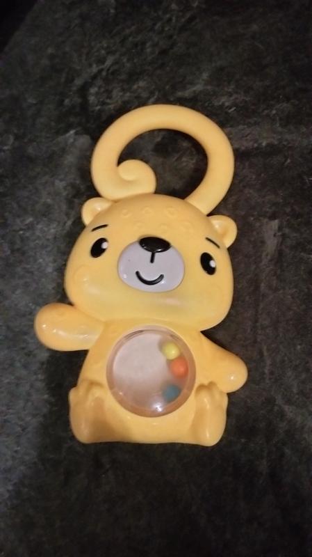 The shake and rattle leopard was great at keeping my little man amused for awhile, he like the little balls in the belly! He even likes to take it in the bath tub and rides in the car ! Perfect for tiny hands!!