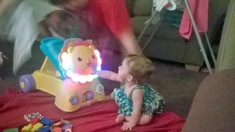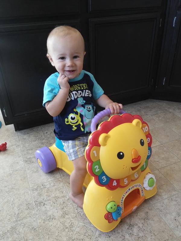 I bought this toy for my daughter to play with a d to help her start walking. This toy has been great to help get her on her feet and start off with little steps. Within a week she was able to take steps without holding on to the toy. She is 12 months and this is a big accomplishment for her with this toy. When shes tired from walking ahe sits and play with the balls and the numbers on the lions head. I would highly recommend this toy to anyone who needs alittle help to get their baby walking.