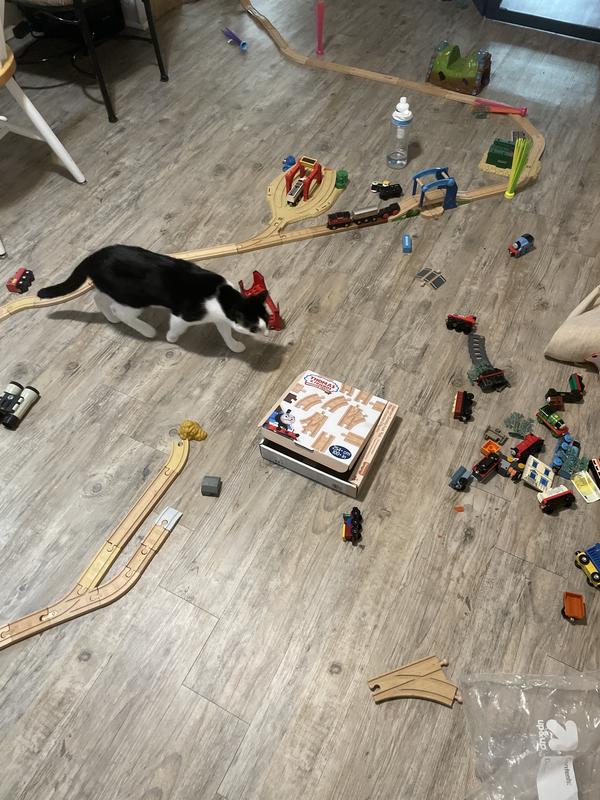 Bought this Thomas and Friends’ Wooden railway expansion pack as a birthday gift for my twin boys. They already have some wooden railways but needed and wanted more! This is perfect for what they have already; and was a great price! They are already taking over our computer area and craft room building away!!! I love that things like this keep them off and away from their tablets/ screen time.