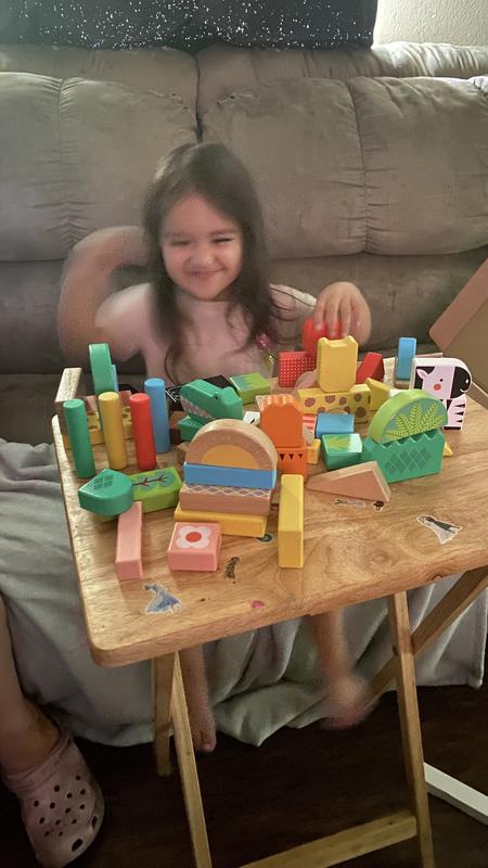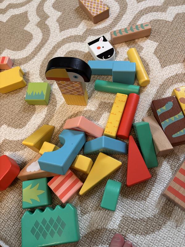 Wooden Jungle Blocks, Animal-Themed Building Set, 50 Wood Pieces