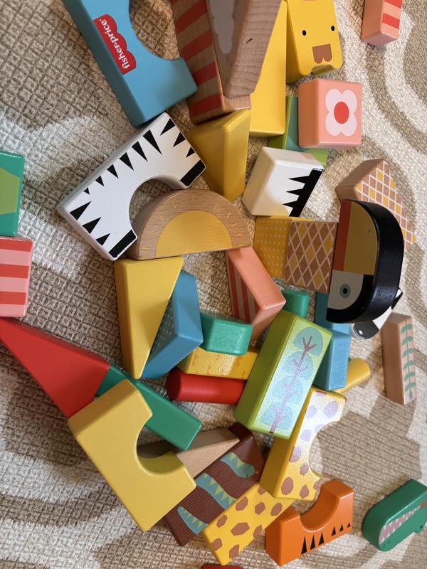 The Fisher-Price Wooden Jungle blocks are so cute and fun! My son loves the bright colors and all the different animals he can create with them. He spends a lot of time playing with them. I love how cute they look too!