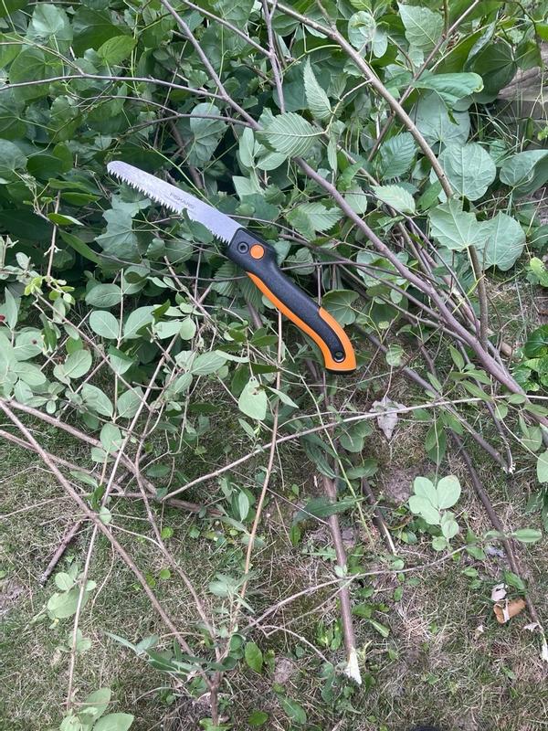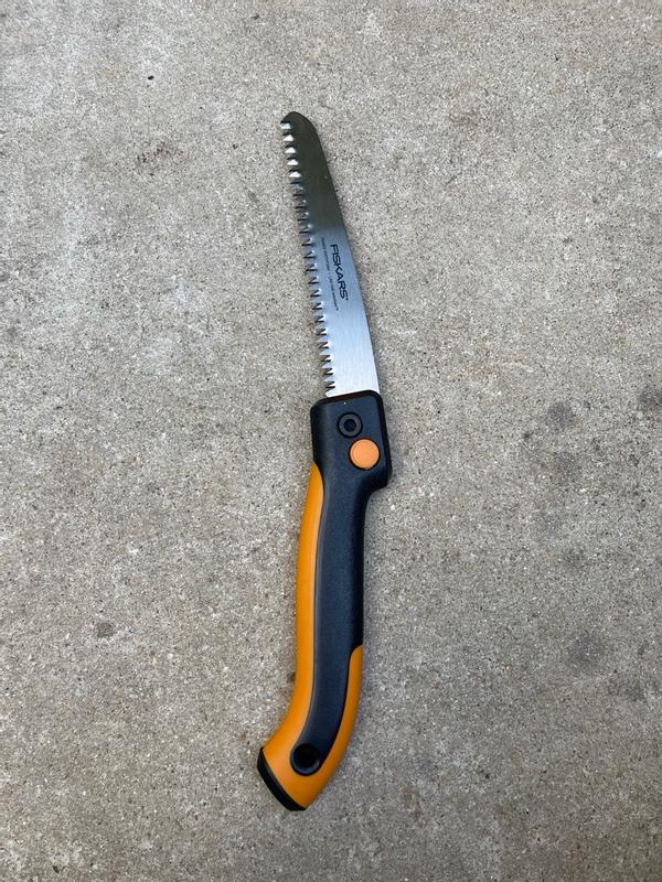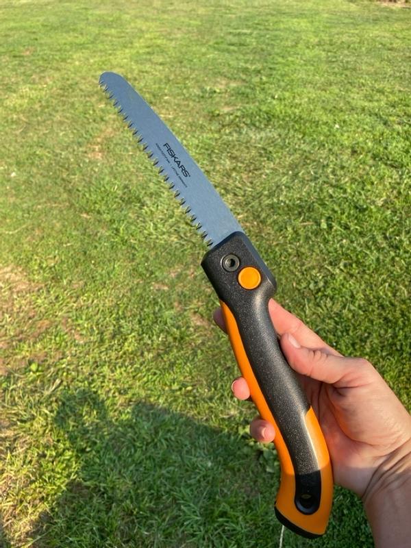 My husband was excited to get this, as he was actually needing one for clearing some brush. The compact size with the folding handle makes it easy to store. The handle is still sturdy while you’re working, even though it folds up. He was able to get the saw into some tight places with ease thanks to its size.