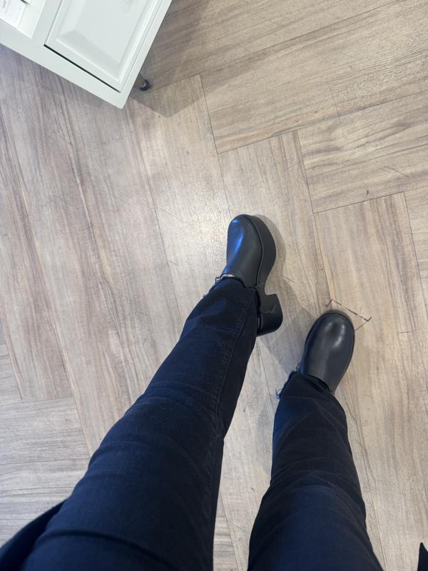 I love these clogs; however, wish they had a little more give when walking. Seem somewhat stiff. Hoping this will improve with wear!