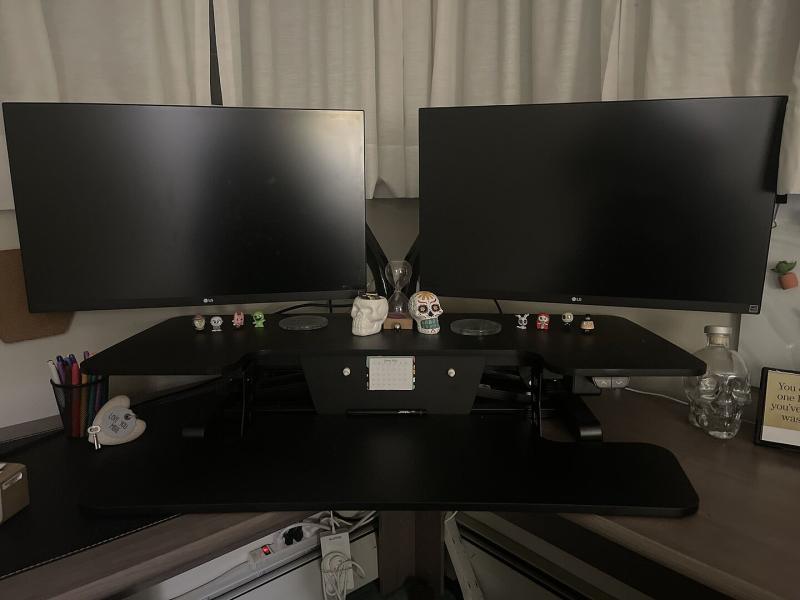 So much better than the manual sit/stand desk set up I had previously, especially with a Black Friday 50% off sale! It really helps with my tailbone pain. It&s super quick to set up, maybe took 5 minutes with a neighbor helping me lift it up.
