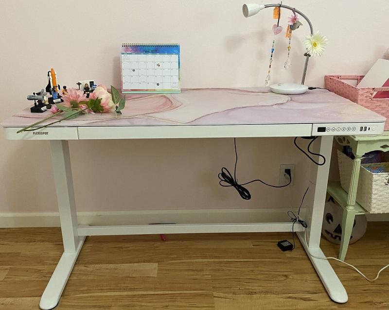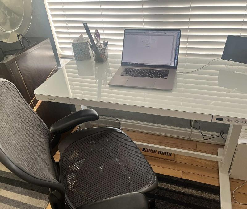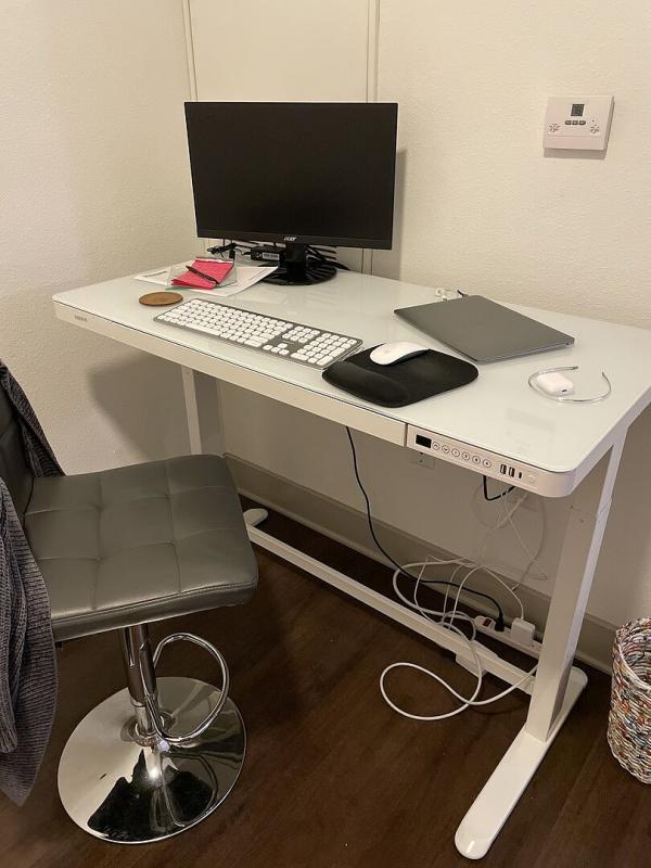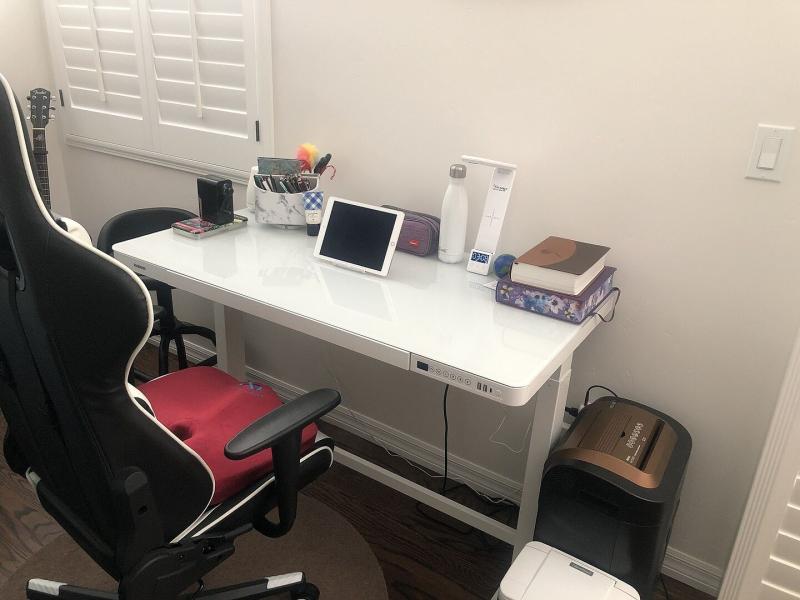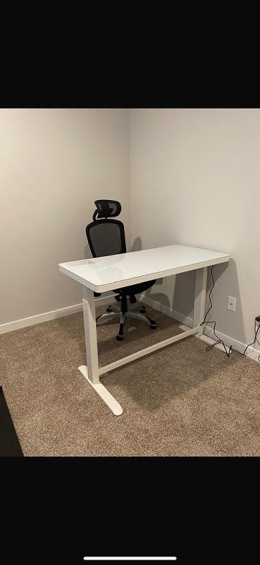 Love the comhar glass top white standing desk. It looks great and feels great with great quality . Highly recommend to anyone.