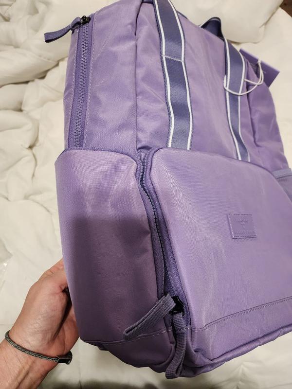 She is so cute!!! I love the lavender color. But it’s not all about looks. The bag is a perfect size for classes or a commute! It has pockets for your water bottles and laptop and anything else you might need. Love it!